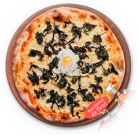 Hausspezialität mit Schinken, Champignons, Spinat, Knoblauch, Chili